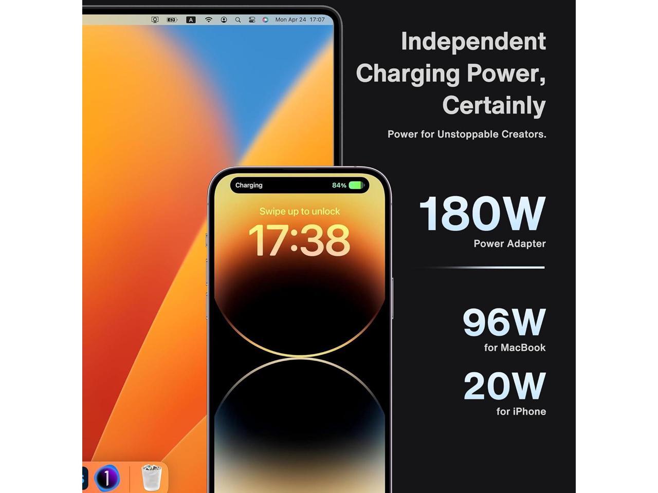 - 2.Full Speed Charging: This dock features a 180W power adapter, enabling efficient charging of laptops up to 96W and PD USB-C devices up to 20W