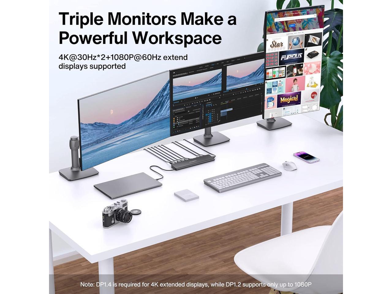- 4K Triple Extended DisplaysNo drivers needed, just connect to 2 HDMI ports and DisplayPort port for dual 4K@30Hz and one 1080P@60Hz monitors. Note: Close your laptop if you need triple extend displays