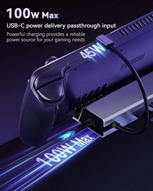 High-speed Power Delivery: The PD 3.0 (100W Max) feature ensures that your Steam Deck will charge quickly and efficiently, so you can keep gaming uninterrupted. With this powerful charging capability, you can rely on your Steam Deck Dock to provide a reliable power source for your gaming needs.