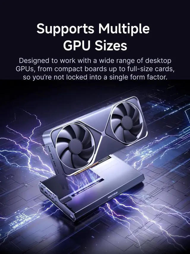 Dual Mode FreedomThis DEG2 Docking Station supports Oculink and Thunderbolt 5, just switch between TB5 and OCuLink with a physical toggle-nocable changes, no software tweaks. Choose the mode that fits your current device.
