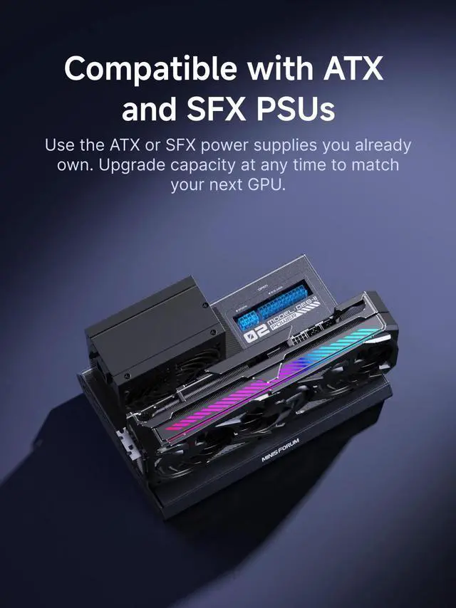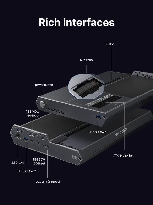 MINISFORUM DEG2 External GPU Docking Station Compatible with Oculink and Thunderbolt 5, eGPU Enclosure Graphics Card Extension Support ATX/SFX Power, with 2.5G Lan Port, M.2 Slot, USB3.2 Port