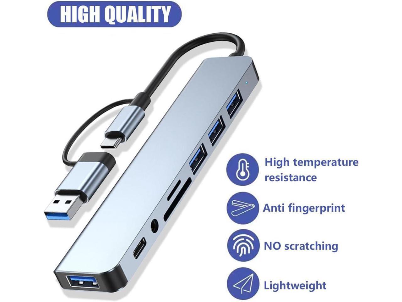 Duomigo 8 in 1 USB C Hub Splitter, 4 USB Ports, 1 USB-C Jack, TF/SD Card Reader, 3.5mm Audio Output,Compatible with MacBook Pro, iPad Pro,Laptops