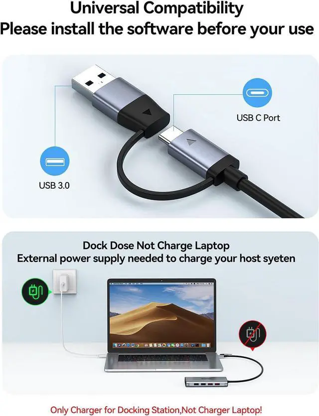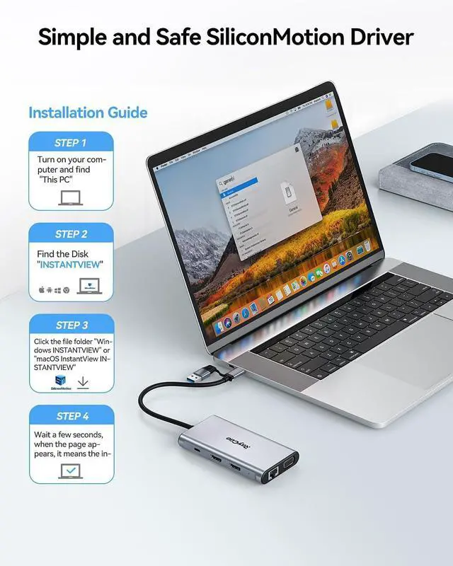 Quality GuaranteedBefore using USB Docking Station, You just need to click the pop-up " Siliconmotion" driver to use it directly make sure that the program is running when you use Docking Station. We sincerely provide 24-hours service. If you have any issues before or after the order, please do not hesitate to contact us for a pleasant solution.
