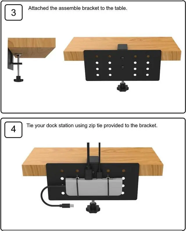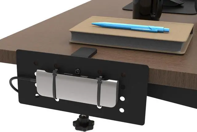 Space Optimization: Our mount plate is ingeniously engineered to mount your dock station on the side of your desk, effectively freeing up valuable desk space. Say hello to a cleaner, more organized workspace.