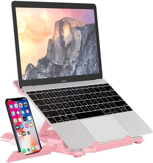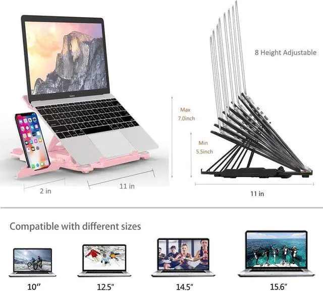 Phone Stand: Viwind Laptop stand elevates your laptop by 5-7 to a perfect eye level, fixes your posture and prevents you from hunching over your screen. 8 levels viwing angle can adjusted according your different demands. Reduces neck and shoulder pain, relieve eye strain. Moreover, The mobile phone bracket is designed on the side, easy for placement and viewing