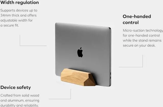 EUROPEAN CRAFTSMANSHIP: Handmade in Europe, this Oakywood Vertical Laptop Docking Station crafted from oak wood is perfect as desktop organizer for MacBook Air, MacBook Pro, and Apple iPad. A stylish solution for creative professionals and home office setup.