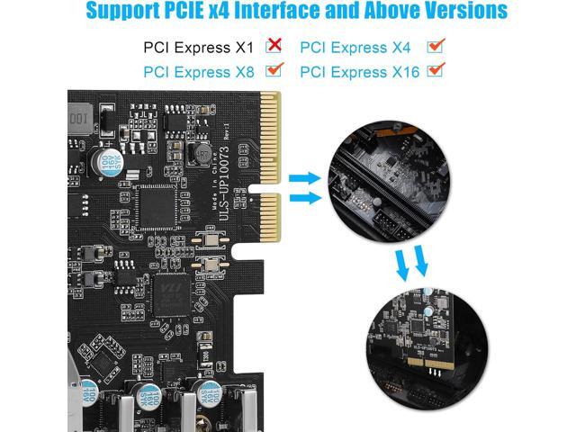 - 10Gbps Transmission RateOne USB Type-C port and three USB Type-A ports share 10Gbps bandwidth, and the rest three ports share another 10Gbps bandwidth, with a total bandwidth of up to 20Gbps. Each port supports transmitting data at a rate of up to 10Gbps when used solely. Note: The USB expansion card only supports data transfer Not PD fast charging and video signal transfer (DP, HDMI, VGA display conversion) and USB-C Thunderbolt protocol