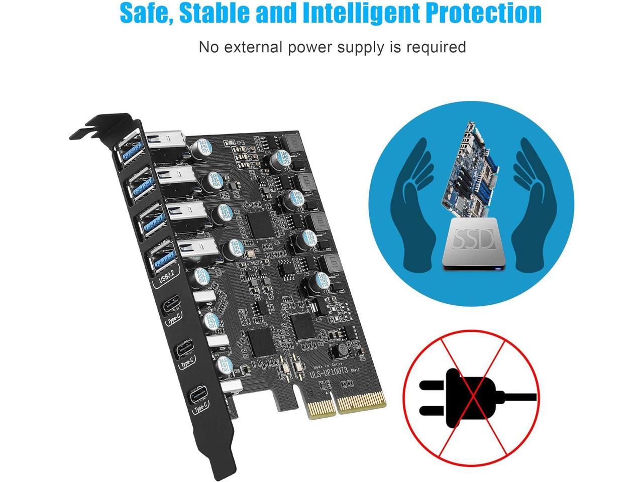 PCIe to USB 3.2 Gen 2 Card with 20 Gbps Bandwidth 7 USB Ports (4 USB Type-A and 3 Type-C Ports), PCI Express (PCIe) Expansion Card for Desktop PC