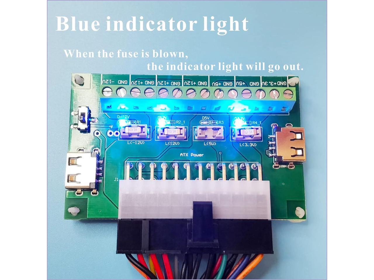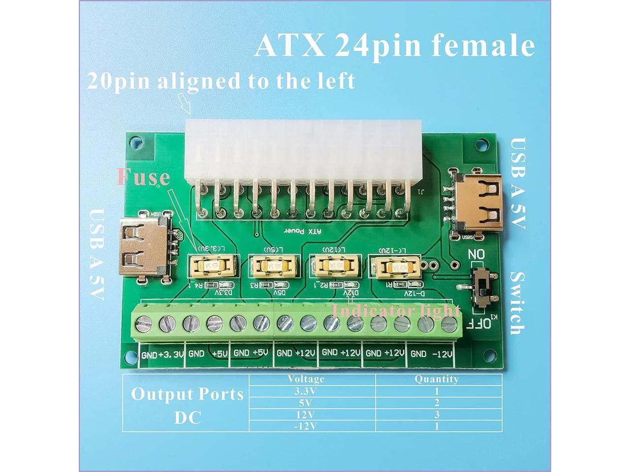 PSU Breakout Board ATX Power Supply DC 12V 5V 3.3V Splitter Module Desktop Adapter to USB A Hub Connector Computer Power Source Multi Port Output DIY Parent Child Electronic Kit with High Current Fuse