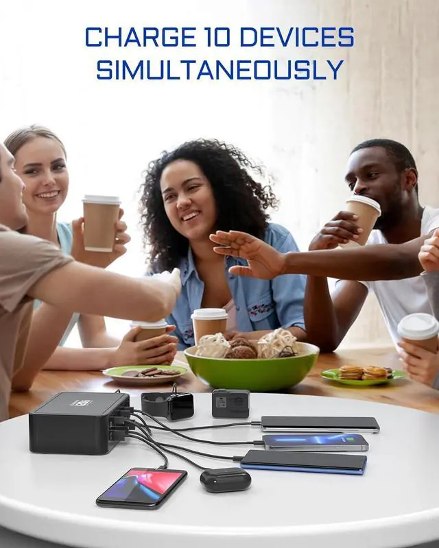 Max 120W 10 Port Features 5-USB C and 5-USB A(Including 1x 20W PD USB C port, 1x 18W Quick Charge 3.0 port, 4 x 10.5W USB-C port and 4 x 6.5W USB-A port. Equipped with smart charging technology that can maximize charging speed and energy efficiency for each port and provide the optimal current and the quickest charge.