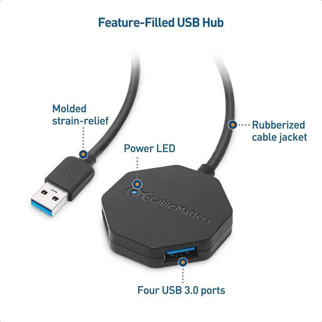 USB hub long cable with 5Gbps USB Support - the USB hub 3.0 immediately expands a single USB port from your laptop, notebook, tablet, or docking station into a SuperSpeed USB hub extension that supports 4 USB peripherals with a 5Gbps data transfer rate