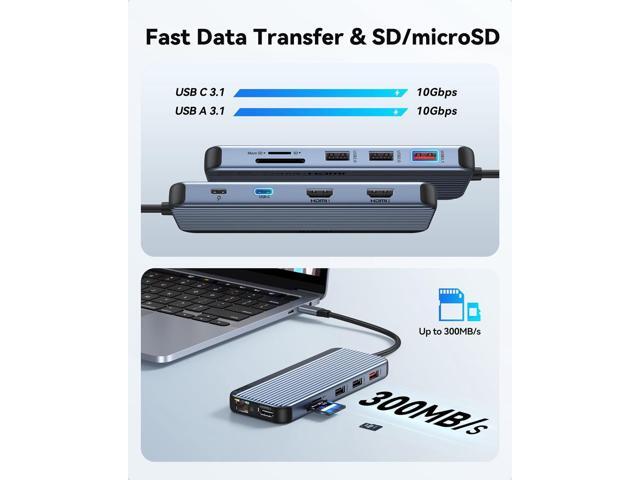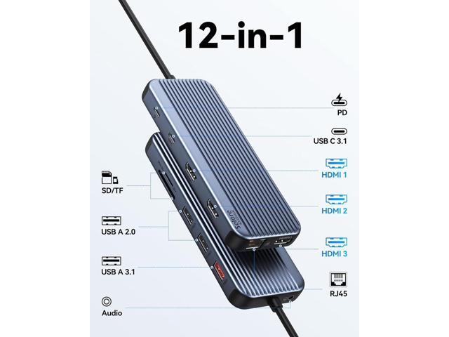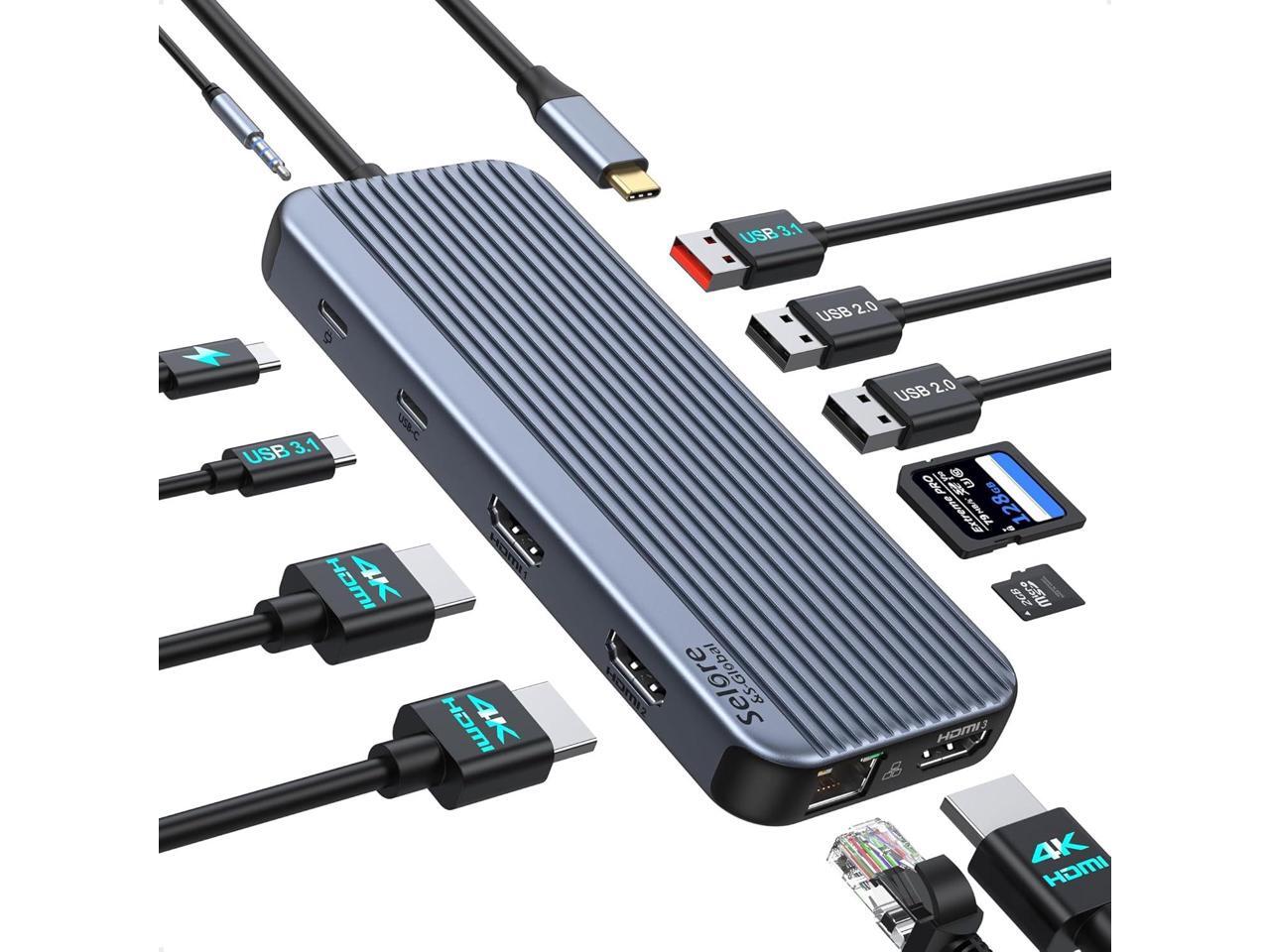 - USB C Docking Station3 HDMI Ports Selore USB C Docking Station Dual Monitor equiped with 3 4K HDMI,USB C 3.1,USB A 3.1,2xUSB 2.0, SD/TF Card Reader, Gigabit Ethernet, Audio&Mic and 100W PD Charging. Easily expand your type c or thunderbolt ports to 12 different Ports.Plug and play, no need to install any driver or software! With this laptop docking station,you will get most port you might will use in work and life.THE LAPTOP USB C PORT MUST SUPPORT DP ALT MODE OR THUNDERBOLT