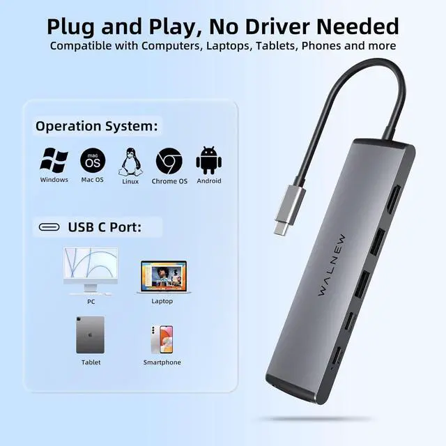 What you getWALNEW 7 in 1 USB C Hub/7-in-1 USB-C PD 5Gbps Data Hub, USER Manual, 18-month hassle-free warranty and our friendly 24-hour customer service.