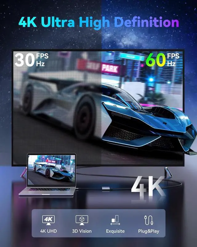 Enjoy Crystal-Clear 4K UHD Image: While single use one HDMI port resolution up to 4K@60Hz, dual monitor with HDMI at 2x 4K@30Hz(3840x2160@30Hz); laptop dual monitor adapter also support 1440p and 1080p at 60Hz offered by the DisplayPort MST technology; with this high-performance USB-C adapter when you play games the screen without any millisecond delay. (Important: ONLY when your devices support 4K resolution, the video output will be 4K, please make sure to use a HDMI 2.0 cable or better. )
