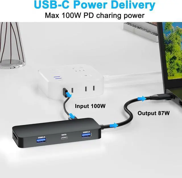 100W PD Powerful Charging: Type-C PD port supports PD 3.0 protocol to quickly charge your device up to 85W of power (the hub consumes 15W power).