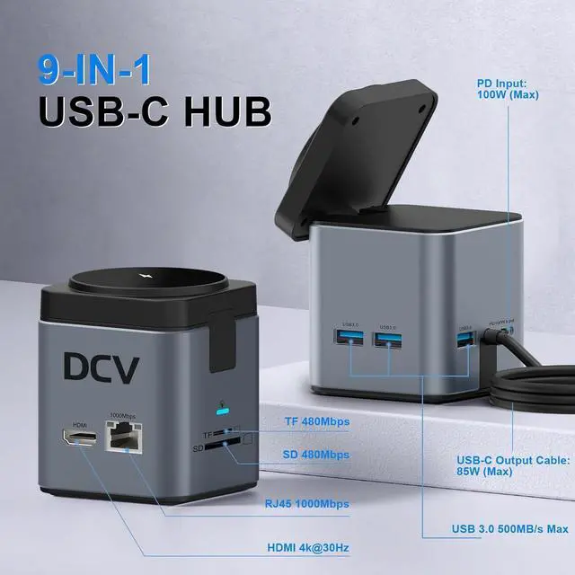 Fast Data Transfer: DCV universal docking station transfers data by USB 3.0 (500MB/s). Inserts into SD and TF slots, you can transfer photos to a laptop or mobile phone at up to 104MB/s, and you can post photos to Instagram, YouTube, or Facebook in the next second. Perfect for Photographers, Designers, Video editors, etc.