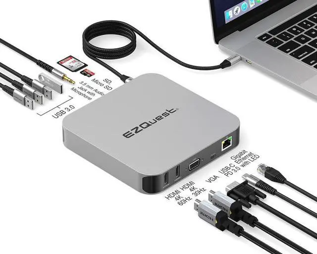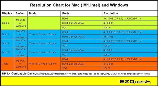 [IMMERSIVE HD DISPLAY WITH DUAL HDMI] Immerse yourself in stunning visuals and elevate your multimedia experience. The EZQuest Ultimate Plus Dual HDMI USB-C Multimedia Hub Adapter connects your M series Mac or Intel based Macs & Windows computers that are equipped with USB-C, Thunderbolt 3 or 4 to create extended mode displays and expand your work throughout the 2nd and 3rd or even 4th display so you can work faster and more efficiently with up to 4K 60Hz for 1st HDMI display on DP 1.4, 4K on 2nd HDMI port and VGA port too.