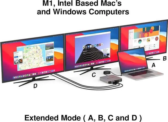 [COMPATIBILITY] This Hub' s video output designed for Mac M series chips and Intel based Macs as well as Windows computers to create three external extended or mirrored displays.
