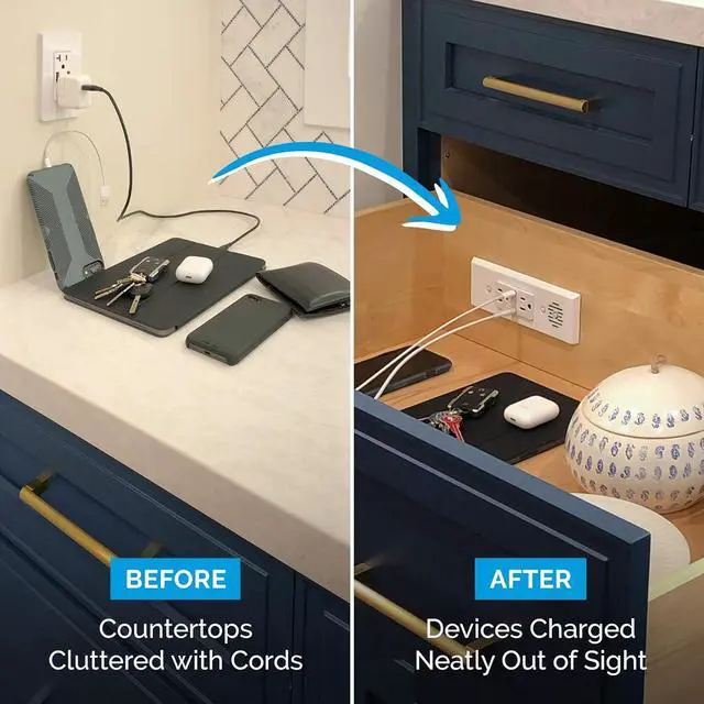 Powerful Organization: Connect devices inside the drawer to eliminate countertop clutter.