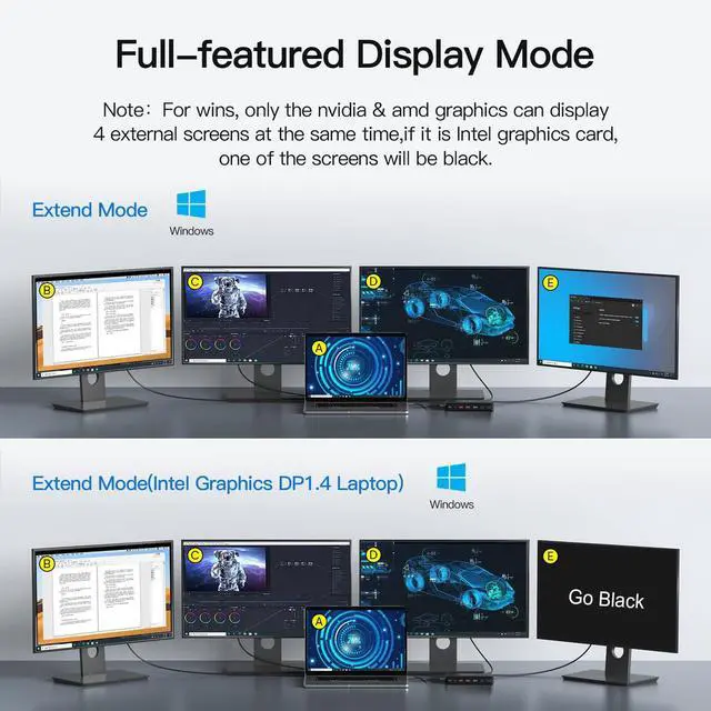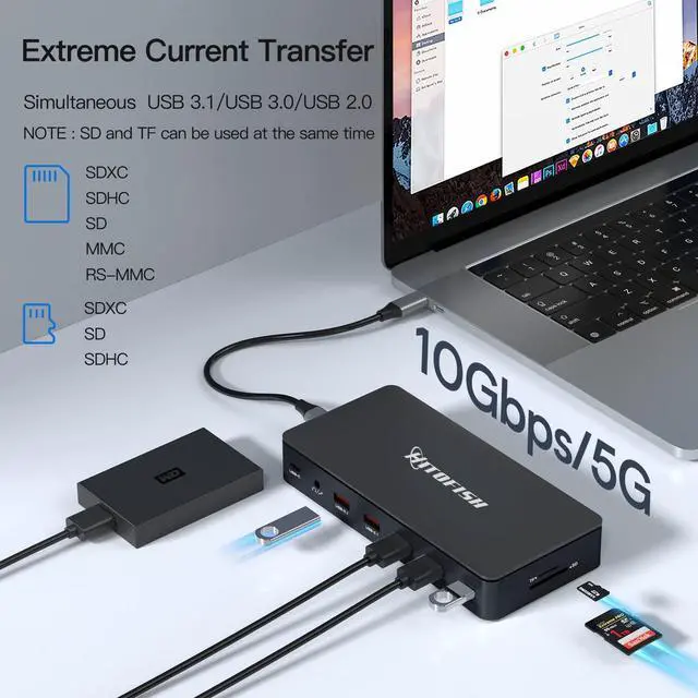 2. extended output 1xDP, 2x HDMI, 1x VGA, 1x network port, 5x USB A+1xUSB C(data transfer)+1xPD(USB C) and TF +SD card interface, 1x audio interface.