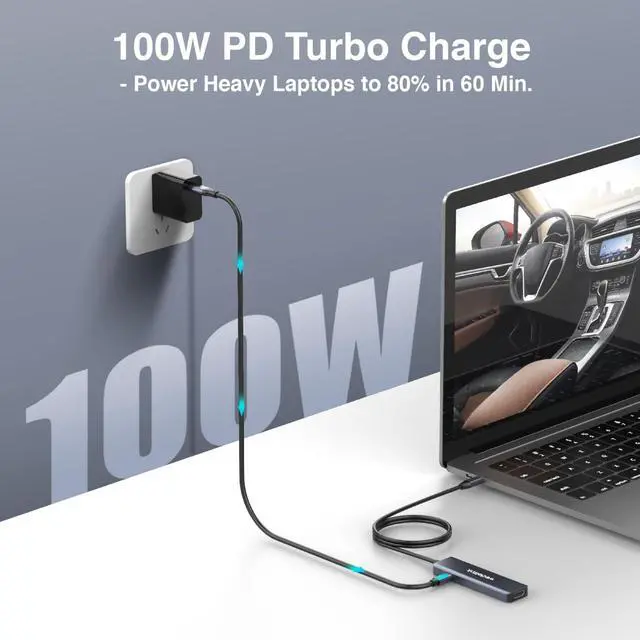 [Charge Everything at Once]:Power up to 100W for laptops (MacBook Pro/Air) + 7.5W for phones via USB-A, all while transferring files.