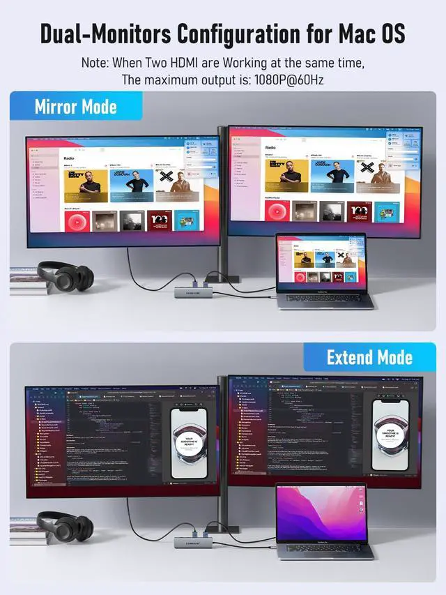 ![]() Dual HDMI Monito | ![]() Aluminum Docking Station | ![]() USB C Hub with 2 HDMI | ![]() USB C to HDMI Adapter |