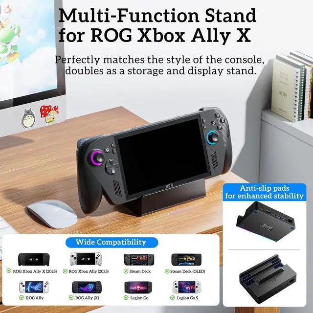 100W PD Fast Charging Intelligent Power Delivery PD 100W input for ROG Ally X powers your device and dock simultaneously with smart charging. Built-in overvoltage, overcurrent, short-circuit, and overheat protection safe, stable charging for extended play sessions using premium for ROG Xbox Ally compatible accessories.