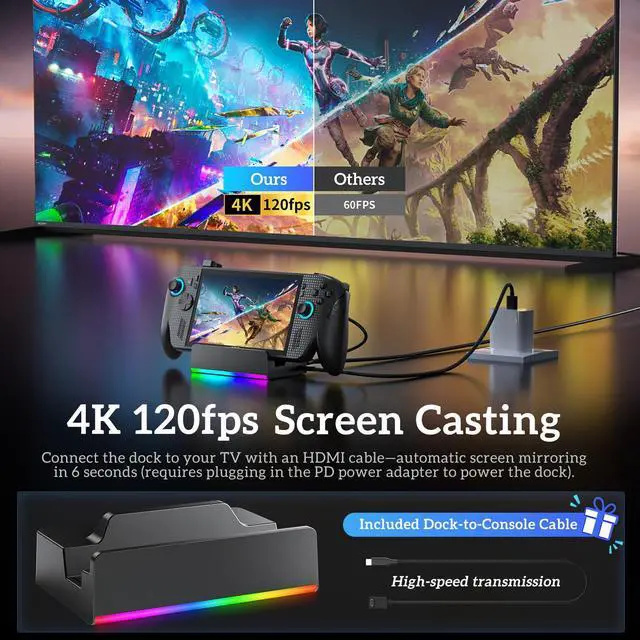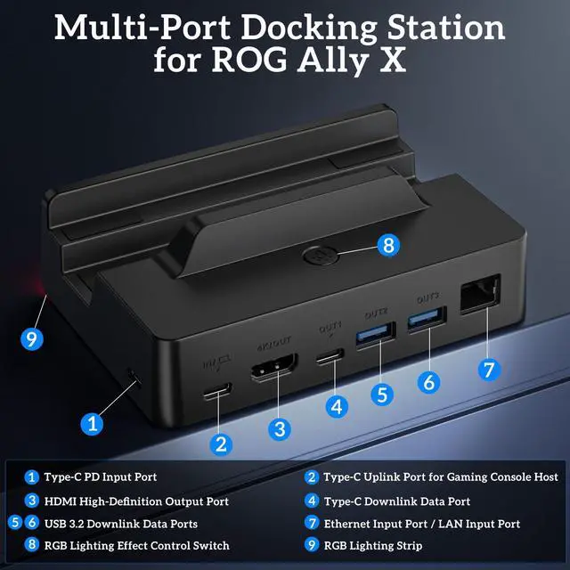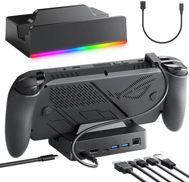 Docking Station for ROG Xbox Ally X, Accessories for Steam Deck/Legion Go, 6-in-1 ROG Ally Dock with HDMI 4K@120Hz, Gigabit Ethernet, 100W PD Charging, Dual USB 3.2 Ports, RGB Lighting