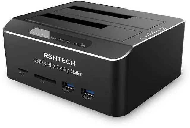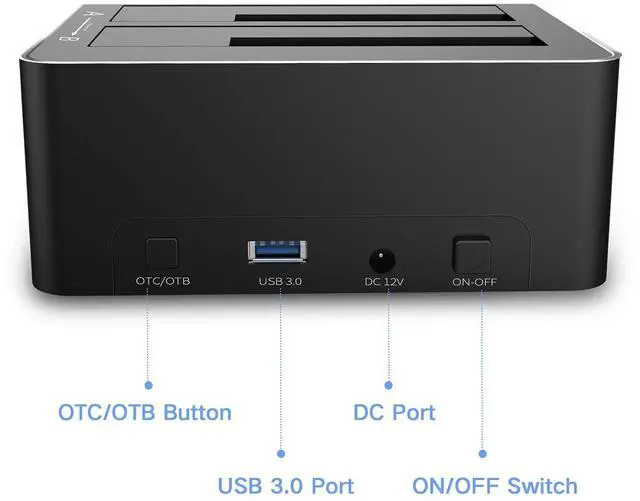 Press the OTC / OTB button at the back of the docking station to start copy data from A disk to B disk automatically.