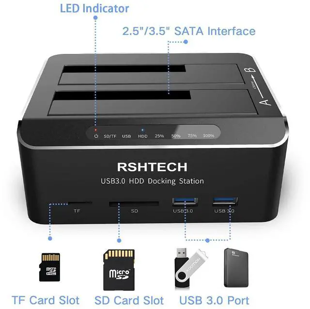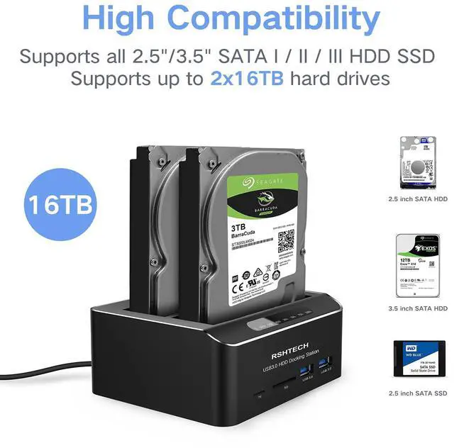 - Support 12TB hard drive for 2.5" & 3.5" SATA HDD / SSD.