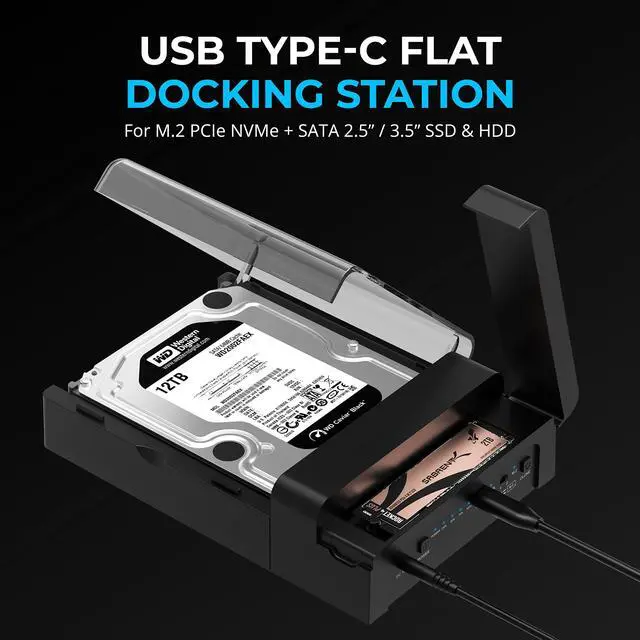 Supports M.2 NVMe SSDs and SATA 2.5”/3.5” SSDs/HDDs simultaneously. Back up, upgrade, or clone with ease.