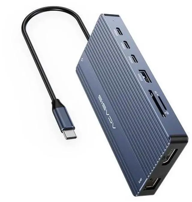 Enhance your workspace with the Acasis 12-in-1 USB-C Docking Station, engineered for seamless connectivity and productivity. This versatile dock transforms a single USB-C port into a comprehensive hub, featuring three HDMI outputs supporting up to 4K@60Hz for dual or triple monitor setups. Enjoy rapid charging via the 100W PD3.0 port, while two USB-C 3.1 (10Gbps, one with 20W PD) and one USB-A 3.1 (10Gbps) ensure swift data transfers. Additional ports include two USB 2.0, SD and MicroSD card readers (320Mbps simultaneous), and a reliable Gigabit RJ45 Ethernet port for stable wired networking.