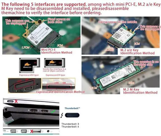 The EXP GDC notebook external independent video card base has an Express card data cable and a 6-pin/8-pin power cable. Dual TD compatible switch (hardware conflict resolution);Multi stage anti-interference circuit.