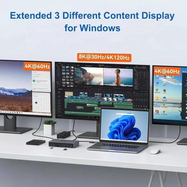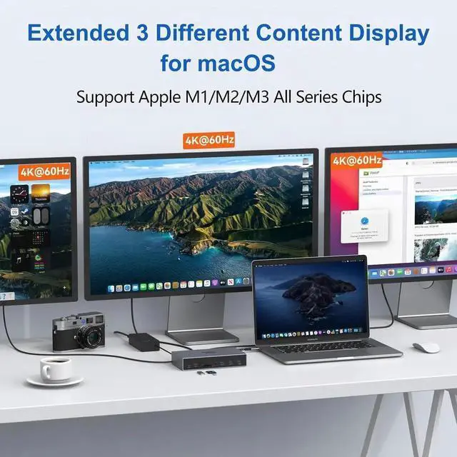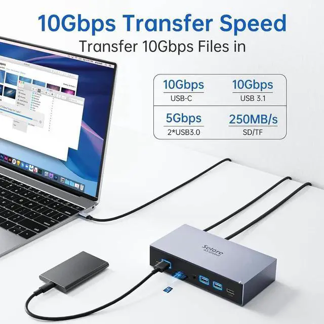 Selore&S-Global Displaylink Docking Station 3 Monitors for MacBook M1/M2/M3/Windows, Dual Triple Display Link USB C Dock with 3 HDMI, 2 DP, DC Power, USB A&C, EthernetDC Power for Dell/HP/Lenovo