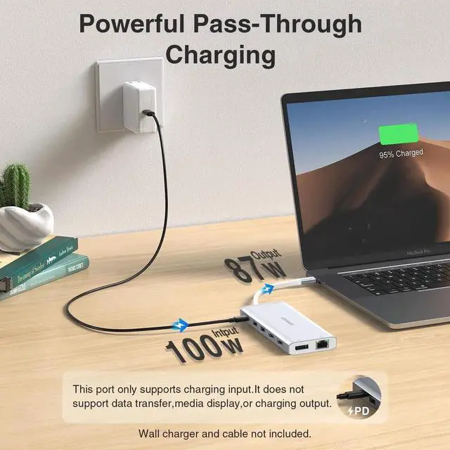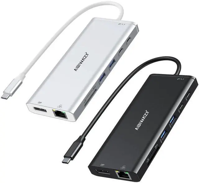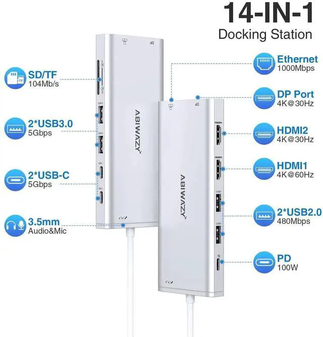 USB C Hub USB-C Docking Station Dual Monitor 14 in 1 Triple Display Multiport Adapter with 2 HDMI+DP+7 USB Type C/A Ports+Ethernet+Audio, USBC Dongle for Dell/HP/Lenovo ThinkPad(Silver+Black)