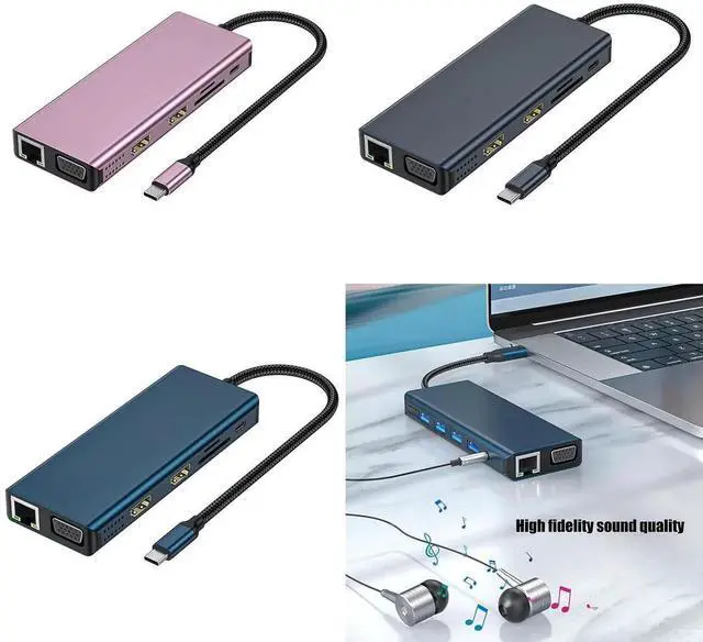 Docking Station Double Monitors 12 In 1 USB C Adapter Multiport Adapter 4 USB Port VGA Ethernet Card Reader For Laptop