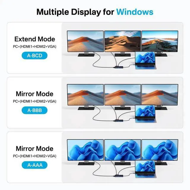 ACASIS USB C Docking Station Dual HDMI Monitor, Laptop Docking Station 3 Monitors With 2 * 4K HDMI+1080p VGA+100W PD+Ethernet+3 USBC 10Gbps+SD/TF+Audio Adapter, USB C Hub for Dell/Lenovo/HP/ThinkPad