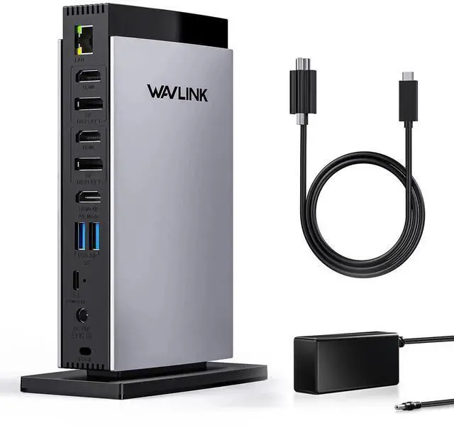 • What Ports Can be ExtendedThe WAVLINK docking station 3 monitors expand 15 ports for daily use:3x4K HDMI+ 2x4K DP+3x 5Gbps USBA port(only data)+USB C 3.1 Gen2 port(only data)+ 2x10Gbps USB C ports(data & charge)+ Gigabit Ethernet+ 3.5 mm audio+SD/TF(104MB/s).With this laptop docking station,you can easily integrate all your peripherals through one USB-C connection,making it the ideal docking station 3 monitors HDMI ports and more. Remember: Laptop charging is not supported by the dock