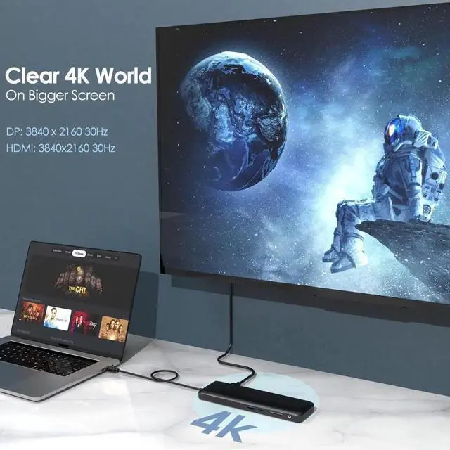 4XEM's Triple Display 4K docking Station has a slim and compact base dock design with high strength cable provides additional durability and good heat dissipation effect. This Docking Station supports triple display under USB-C Video Alternate Mode, with resolution up to 1080p. It will also support 4K@30 fps if the HDMI display is compatible. Besides the display functions it allows you to expand more USB devices with multiple ports. Its Gigabit Ethernet port supports quick uploads and downloads of photos, videos, music and other files. Intuitive installation just Plug & Play, no need for external software driver installation.