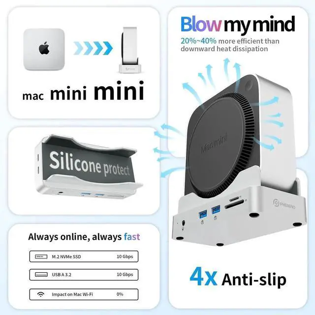 Phixero (2TB Storage) M4 Mac mini Dock, Aluminum unibody Design, 6-in-1 hub, 10Gbps USB-A, SD/TF Reader, Space-Saving Design, Non-Removable SSD