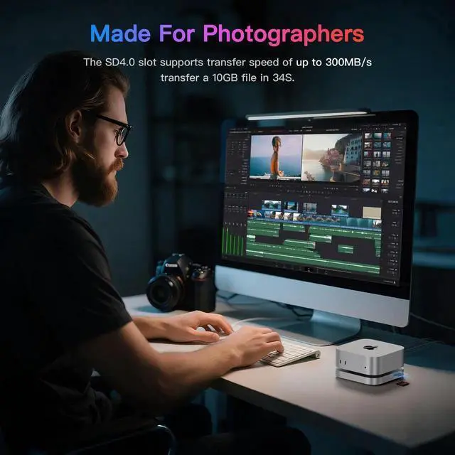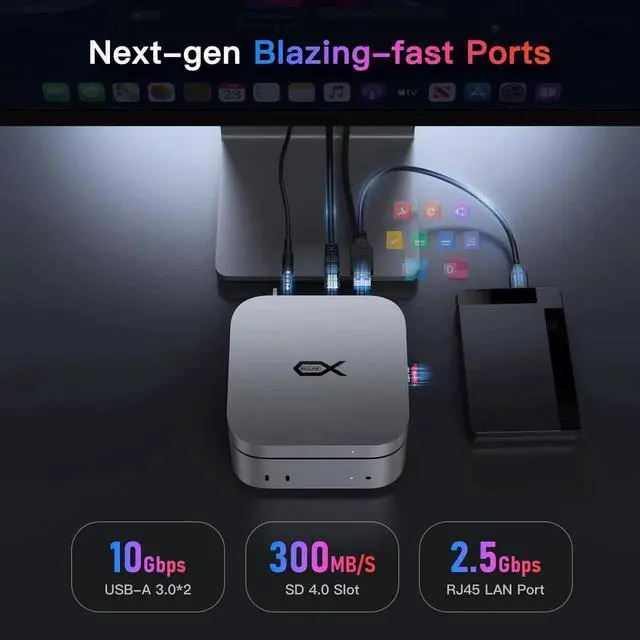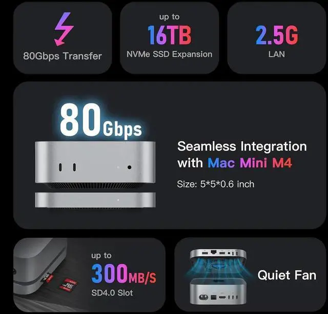 Mac mini M4 Dock, Beelink Mate Mini-A 80Gbps Docking Station, 2*M. 2 PCIex2 SSD Slots, max 16TB Expansion, SD 4.0 Card Slot, 2.5G LAN, 15W USB C PD 3.0 Port, 2*USB A 10Gbps, 3.5 mm Audio