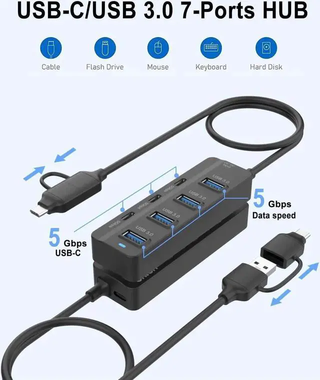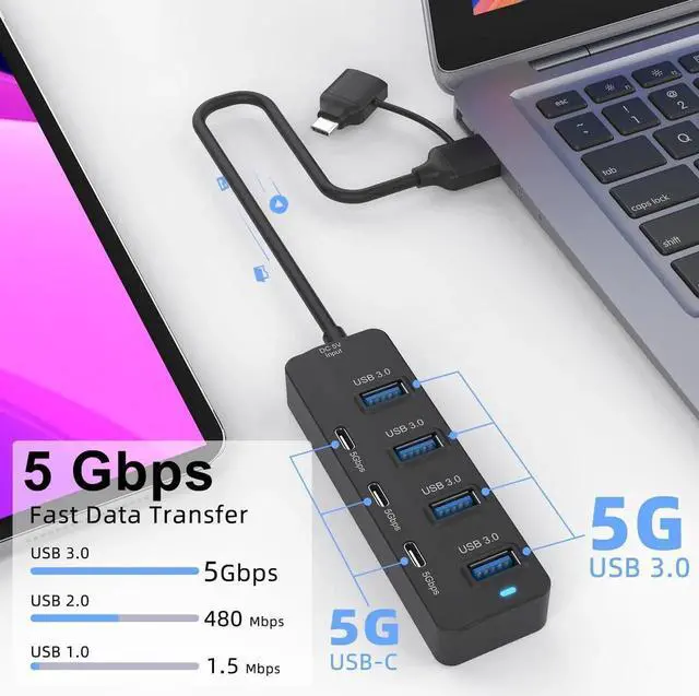Fast USB 3.0 Performance: With USB 3.0 ports, this hub enables data transfer at an impressive speed of up to 5Gbps, offering a rate 10 times faster than USB 2.0. Transfer HD movies, photos, songs, and large files within seconds.