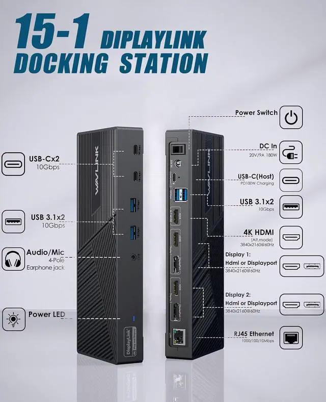 Designed for Work and Play: Ideal for productivity at home or the office. With 4K HDMI support, fast data transfer, and stable Ethernet, its perfect for those who need high-performance displays and seamless workflows. Not recommended for gaming or HDCP content playback.