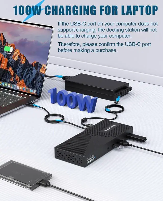 100W Power Delivery for Fast Charging: Charge your laptop with up to 100W of Power Delivery via the included 160W power supply. Quick charging for MacBooks, laptops, and other devices with USB-C charging support.