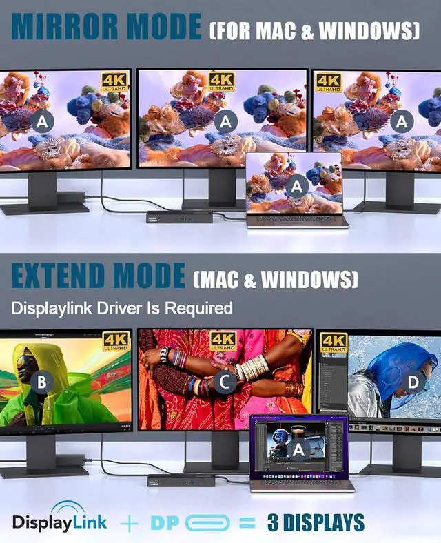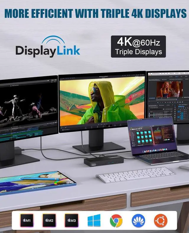 Maximum Productivity: Experience seamless multitasking with 3x 4K HDMI (60Hz. DisplayLink technology ensures smooth display performance, even on MacBook M1/M2/M3/M4 systems. Install the driver for full functionality.