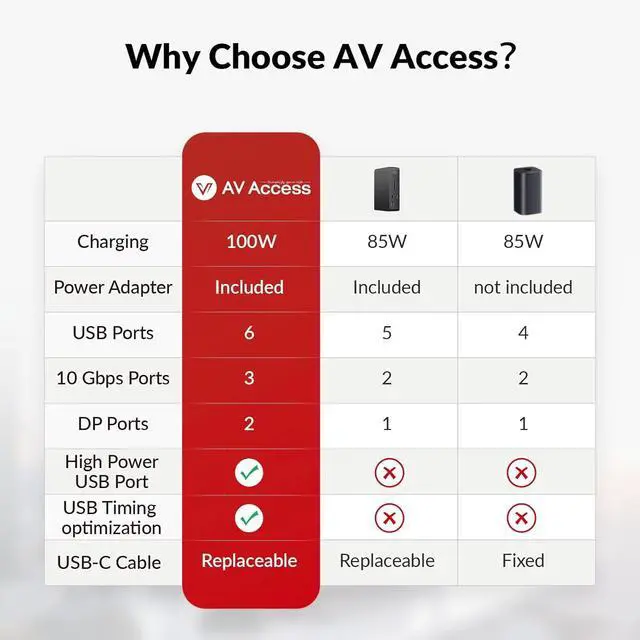 Driver-Free & 100W Charging Enjoy plug-and-play convenience with no drivers required. With a full-featured USB-C (MST) port, this laptop docking station 3 monitors enables triple 4K streaming, 10Gbps data transfer, and 100W laptop chargingall through a single cable. Ideal as a docking station for most USB-C laptops.