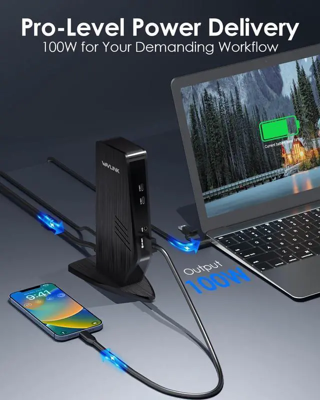 100W Pro Power Delivery: Keep your most demanding laptops, fully powered and running at peak performance. This professional-grade docking station delivers a massive 100W of Power Delivery via the upstream USB-C port, ensuring zero battery drain even during heavy tasks like video rendering, 3D modeling, or compiling code.