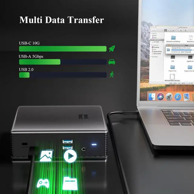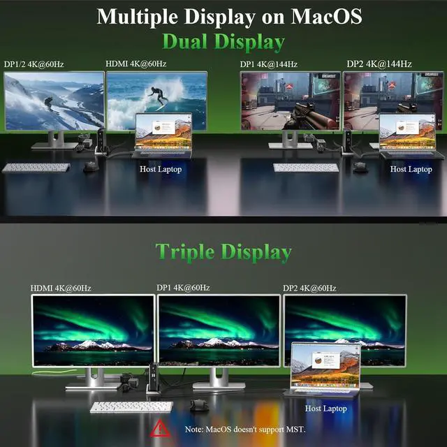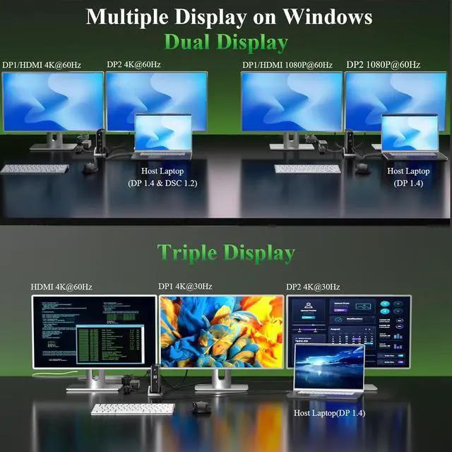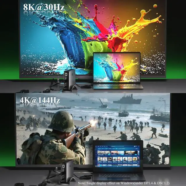 Efficient Triple Display 8K@144Hz DisplayUSB-C Docking Station Experience breathtaking visuals with DP 1.4 & DSC 1.2 support, delivering 8K@30Hz or 4K@144Hz on a single external display. usb c docking station dual monitor A nice choice for gamers, video editors, and designers seeking ultra-clear visuals.