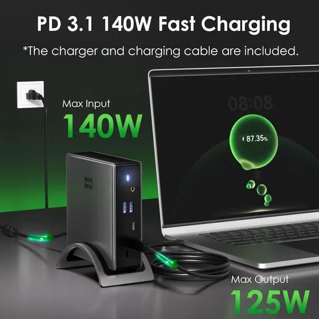 PD 3.1 140W Fast ChargingEquipped with the latest PD 3.1 technology, Maximum 140W power input with the USB-C PD port, supporting pass-through charging to your laptop with output up to 125W. Laptop docking station 3 monitor allows you to enjoy full power every day.