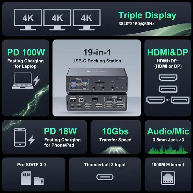 Universal Compatibility: Perfect for professionals in office environments or home users needing comprehensive setups, compatible with Windows/macOS laptops and USB-C devices (plug-and-play).